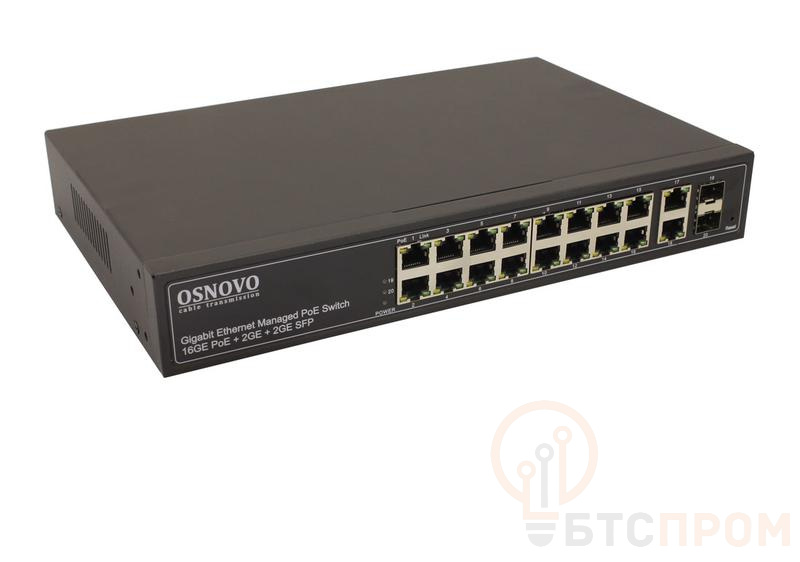 Коммутатор управляемый L2+ PoE SW-8182/L(300Вт) Gigabit Ethernet на 16 RJ45 PoE + 2хRJ45 + 2 GE SFP портов OSNOVO 13257