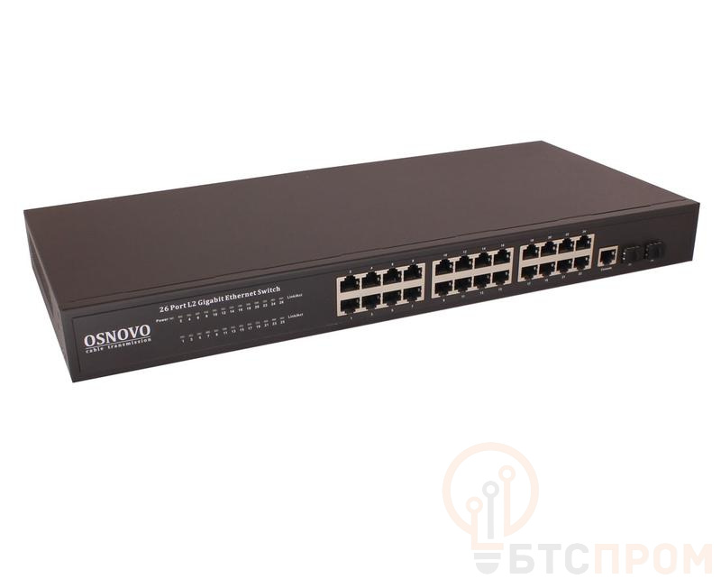 Коммутатор управляемый (L2+) SW-72402/L2 от OSNOVO — это высокопроизводительное 26-портовое решение для построения надежных и масштабируемых локальных сетей. Устройство оснащено 24 портами Gigabit Ethernet и 2 комбинированными портами SFP, что обеспечивает гибкость подключения как по медному, так и по оптоволоконному кабелю для uplink-соединений.