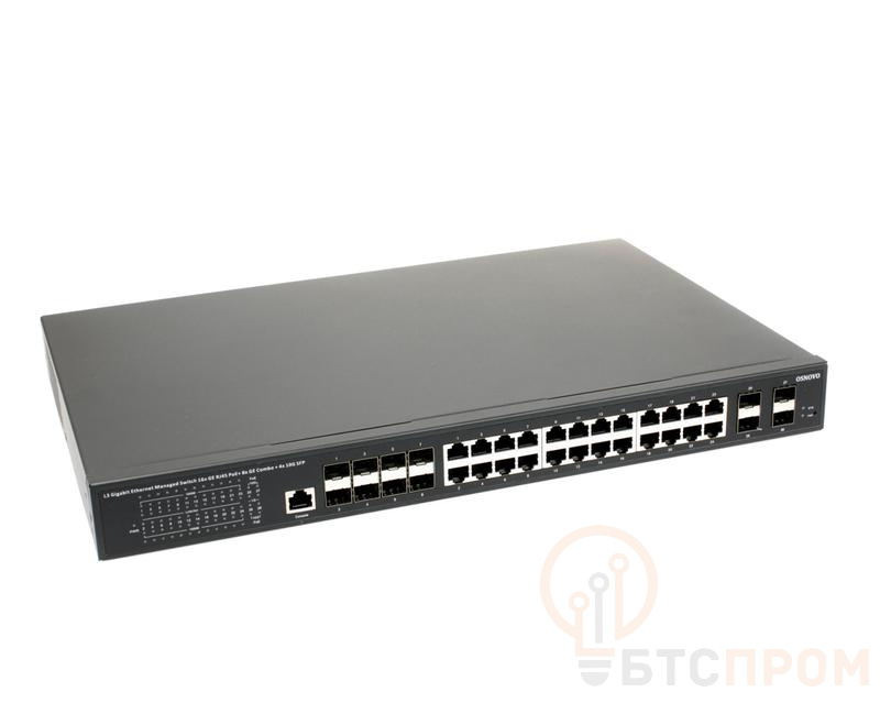 Коммутатор управляемый L3 PoE SW-32G4X-3L Gigabit Ethernet на 16хGE RJ-45 c PoE + 8хGE Combo (RJ-45 + SFP) + 4х1G/10G SFP+ OSNOVO 14169