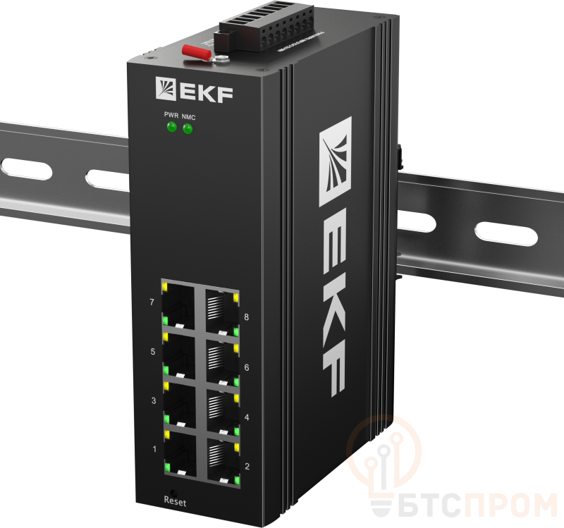 Коммутатор управляемый промышленный уровня L2 ML2-8GTP 8 портов 10/100/1000Base-T(X) RJ45 c PoE монтаж на DIN-рейку TSX EKF TSX-ML2-8GTP