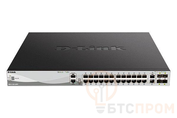 Коммутатор управляемый стекируемый L3 DGS-3130-30PS/B1A (24 порта 10/100/1000Base-T - PoE (30Вт) 2 порта 10GBase-T и 4 порта 10GBase-X SFP+ D-link 1855080