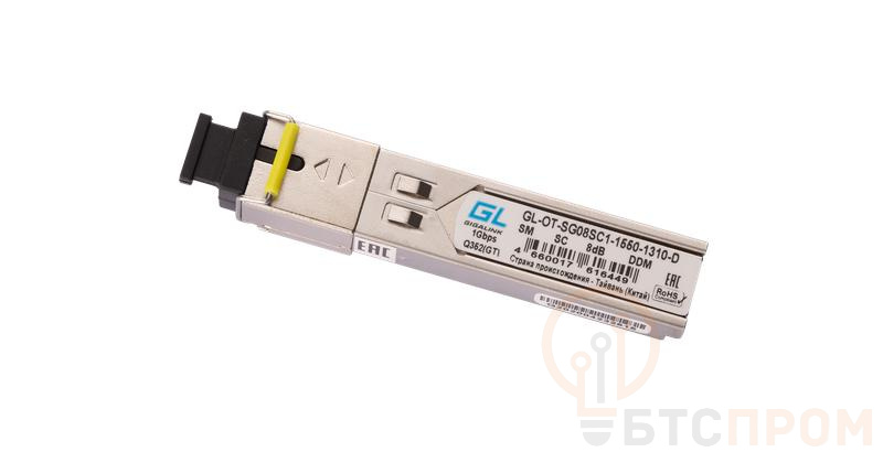 Оптический SFP модуль GL-OT-SG08SC1-1550-1310-D - продукт бренда GIGALINK, предназначенный для подключения удаленного участка сети по одномодовому волокну без необходимости использования дополнительного усилителя. GL-OT-SG08SC1-1550-1310-D представляет собой WDM-модуль, основу которого составил интегрированный оптический интерфейс SC и форм-фактор SFP. Используется для передачи данных на высокоскоростных сетях до 1 Гбит/с на длине волны 1550 нм и приеме на 1310 нм. Дальность действия модели достигает 3 км. Трансивер оснащен функцией мониторинга DDM, которая отслеживает работу устройства в режиме реального времени (температуру, принятую и переданную оптическую мощность, а также ток смещения лазера). Конструкция трансиверов позволяет производить «горячую» замену - замена или добавление нового трансивера может быть произведена во время работы коммутатора без отключения локальной сети. Модуль выполнен в прочном металлическом корпусе, что позволяет увеличить срок службы, уменьшить электромагнитные помехи, а также защитит от внешних воздействий. Модуль GL-OT-SG08SC1-1550-1310-D станет отличным решением, чтобы обеспечить стабильное высокоскоростное соединение с помощью коммутатора доступа агрегации и ядра сети, маршрутизатора или роутера. Идеальный выбор для серверной или дата-центра. Области применения: Gigabit Ethernet.