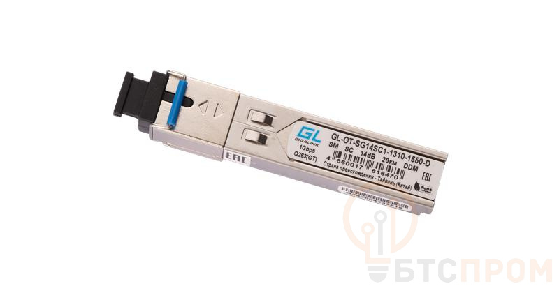 Модуль SFP WDM 1Гбит/с одно волокно SM SC Tx:1310/Rx:1550нм DDM 14дБ до 20км GIGALINK GL-OT-SG14SC1-1310-1550-D