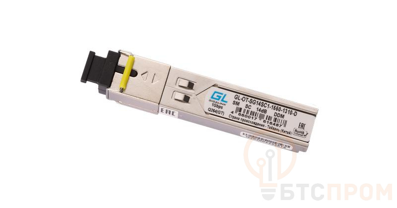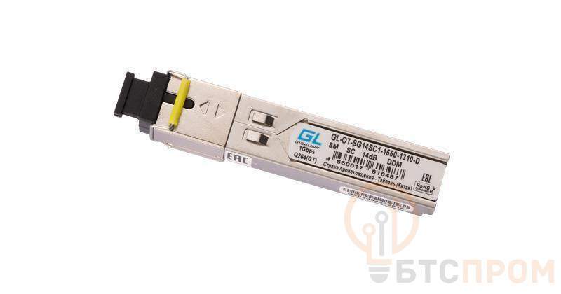 Модуль SFP WDM 1Гбит/с одно волокно SM SC Tx:1550/Rx:1310нм DDM 14дБ до 20км GIGALINK GL-OT-SG14SC1-1550-1310-D