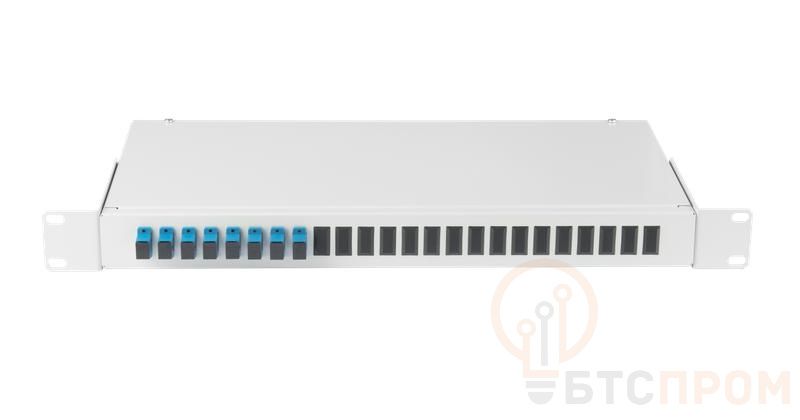 Кросс оптический 19дюйм. 1U 8 портов SC/UPC (8 одинарных SC/UPC адаптеров) SM 9/125 OS2 стальной в компл.е: адаптеры монтаж. шнуры 1м сплайс-кассета с крышкой гильзы заглушки сер. NIKOMAX NMF-RP08SCUS2-WS-ES-1U-GY