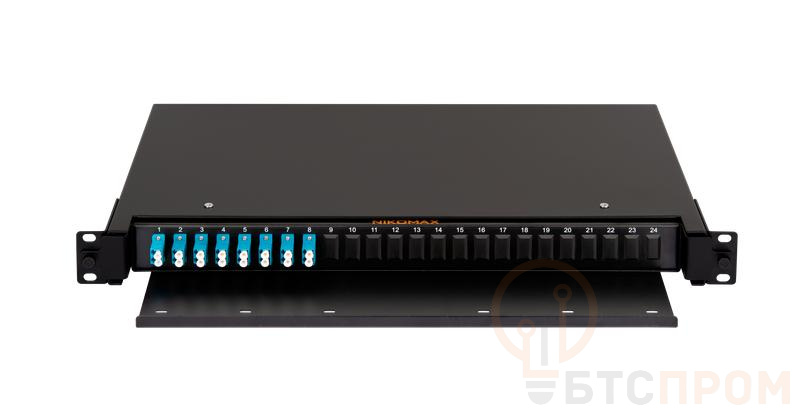 Кросс оптический 19дюйм 1U на 16 портов LC/UPC укомплектованный (8 двойн. LC/UPC адаптеров) SM 9/125 OS2 выдвижной черн. NIKOMAX NMF-RP16LCUS2-TS-P1-1U-BK