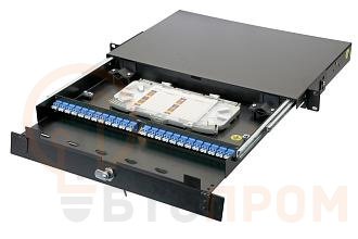 Панель оптическая 19дюйм 1U выдвижная корпус на 24 адаптера 6 дуплекс LC адаптеров OS2 Eurolan 47D-24-S2-2L-06-11BL