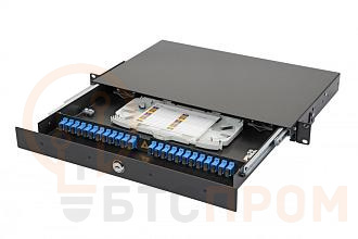 Панель оптическая 47D-24 19дюйм 1U выдвижная корпус на 24 адаптера 16 симплекс SC адаптеров OS2 Eurolan 47D-24-S2-SC-16-11BL