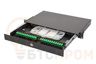 Панель оптическая 47D-24 19дюйм 1U выдвижная корпус на 24 адаптера 8 симплекс SC/APC адаптеров OS2 Eurolan 47D-24-S2-SC-08-11BL-A
