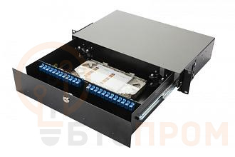 Панель оптическая 47F-48 19дюйм 2U выдвижная корпус на 48 адаптеров 32 симплекс SC адаптера OS2 Eurolan 47F-48-S2-SC-32-11BL