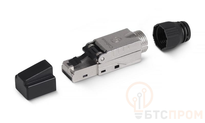 Коннектор 8P8C-SH-C6+ -TWP с фиксатором кабеля и колпачком RJ-45(8P8C) под витую пару категория до 6a экран. для ож кабеля для толстых жил 1.35-1.5мм (с оболочкой) со вставкой Cabeus 8956c