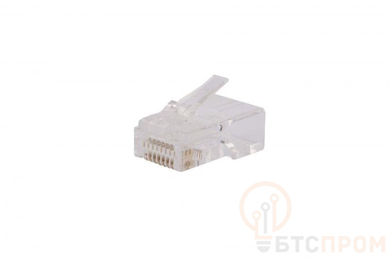 Разъем PLEZ-8P8C-U-C5-100 от Hyperline — это стандартный коннектор RJ-45 (8P8C) категории 5e, предназначенный для оконцовки неэкранированных кабелей "витая пара". Ключевой особенностью данной модели является универсальная контактная площадка, которая обеспечивает надежное соединение как с одножильными (ож), так и с многожильными (мж) проводниками. Золотое покрытие контактов толщиной 50 микродюймов (1.27 мкм) гарантирует высокую коррозионную стойкость и стабильное низкое переходное сопротивление для качественной передачи данных.