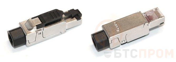 Разъем PLUF-8P8C-S-C6A-SH — это надежный коннектор RJ45 (8P8C) для полевой заделки экранированной витой пары категории 6а. Предназначен для быстрого и удобного монтажа на месте без использования специальных инструментов для обжима. Коннектор совместим с одиночным экранированным кабелем общего диаметром от 6 до 8 мм и проводниками 23-26 AWG, что делает его универсальным решением.