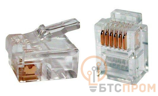 Разъем PLUG-6P6C-P-C2-100 телефонный RJ12 (6P6C) (уп.100шт) Hyperline 49378 фото в каталоге от BTSprom.by