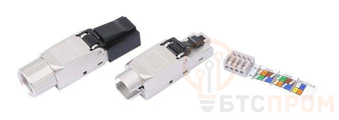 Разъем полевой оконцовки PLUD-8P8C-S-C6A-SH RJ-45 (8P8C) под витую пару для ож кабеля toolless кат. 6A экран. накручивающийся хвостовик IDC Hyperline 427413