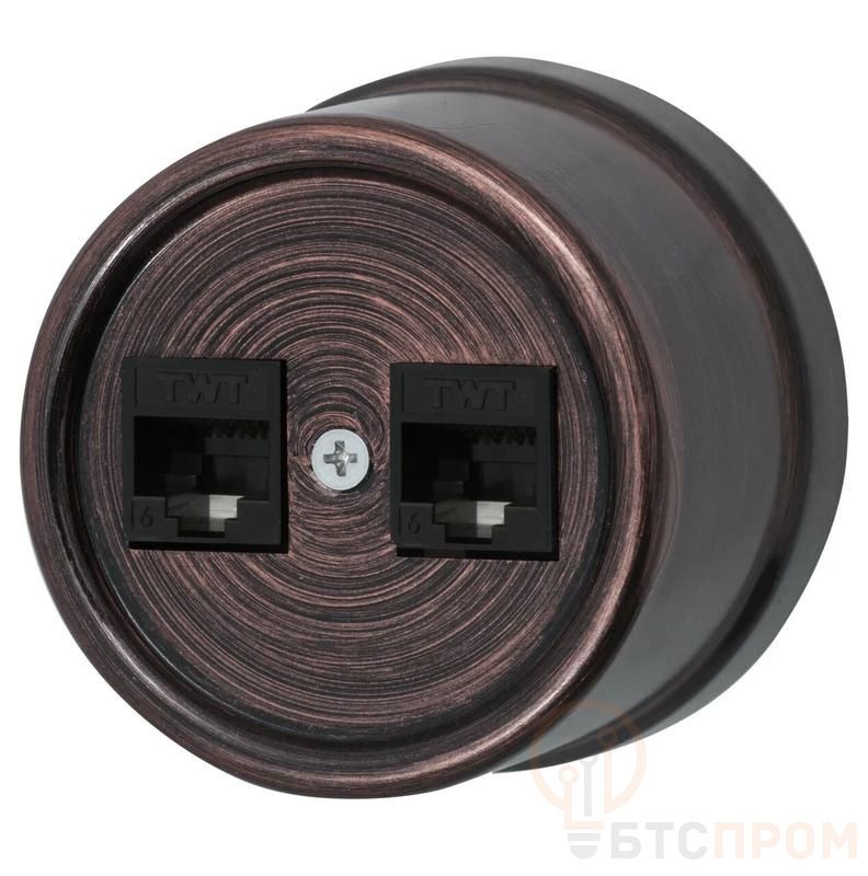 Розетка компьютерная 2-м ОП Лизетта RJ45 10А IP20 ретро кат.5E ABS-пластик медн. век Bironi B1-302-16