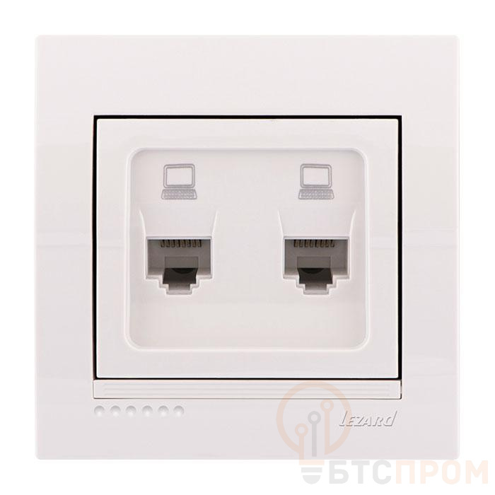 Розетка компьютерная 2-м СП Deriy RJ45 бел. LEZARD 702-0202-141 фото в каталоге от BTSprom.by