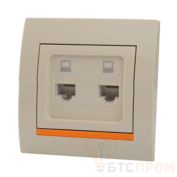 Розетка компьютерная 2-м СП Deriy RJ45 крем. LEZARD 702-0303-141 фото в каталоге от BTSprom.by