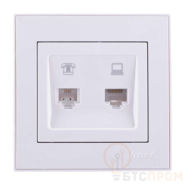 Розетка компьютерная + телефонная 2-м СП Rain RJ45 + RJ11 бел. LEZARD 703-0202-143 фото в каталоге от BTSprom.by