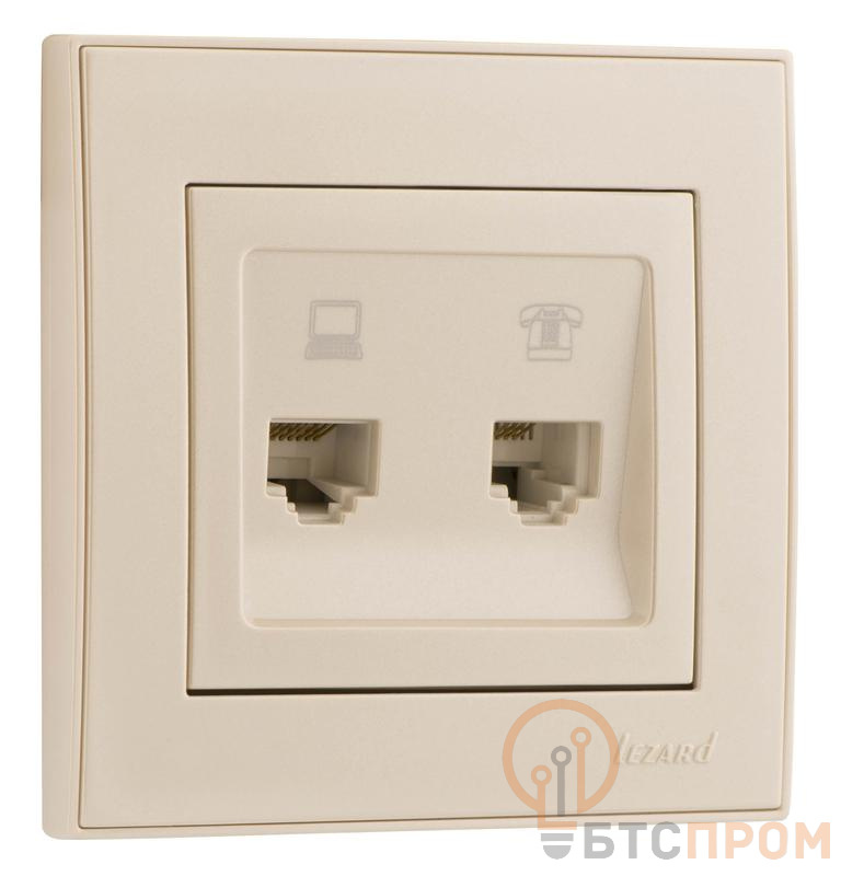 Розетка компьютерная + телефонная 2-м СП Rain RJ45 + RJ11 жемчуж./бел. перламутр. LEZARD 703-3030-143