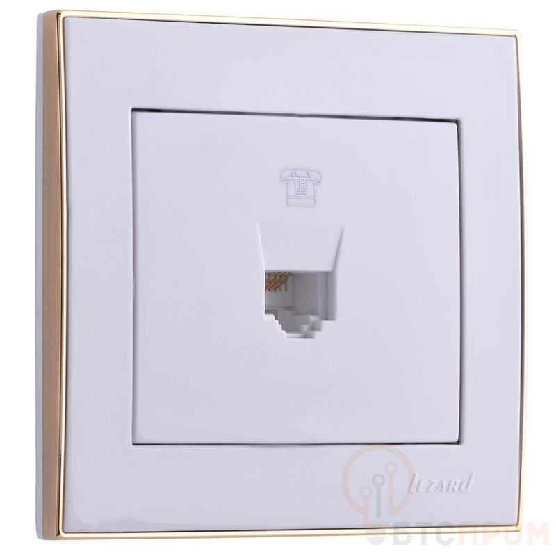 Розетка телефонная 1-м СП Rain RJ11 евро стандарт с зол. боковой вставкой бел. LEZARD 703-0226-137 фото в каталоге от BTSprom.by