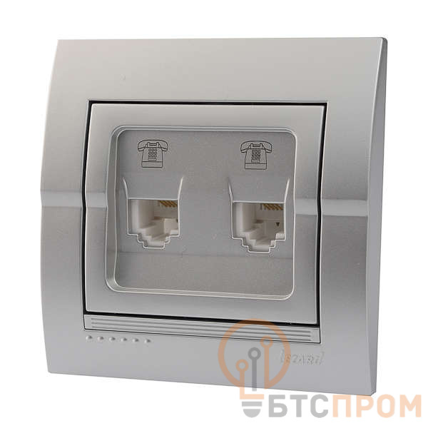 Розетка телефонная 2-м СП Deriy RJ11 серебр. метал. LEZARD 702-2828-138 фото в каталоге от BTSprom.by