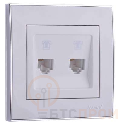 Розетка телефонная 2-м СП Rain RJ11 с хром. боковой вставкой бел. LEZARD 703-0225-138 фото в каталоге от BTSprom.by