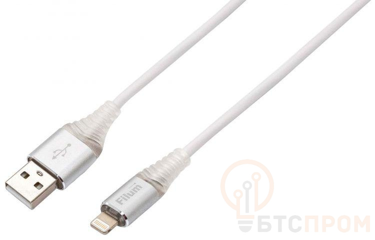 Кабель USB 2.0 Pro 2А индикатор заряда разъемы: USB A (m) - Lightning (m) 1м бел. Filum FL-CPro-U2-AM-LM-1M-L1