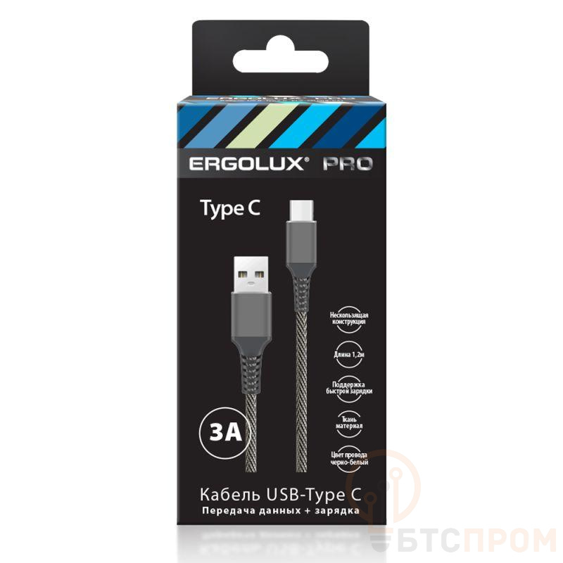 Кабель USB-Type C ELX-CDC08-C41 от Ergolux — это надежное и быстрое решение для зарядки и синхронизации ваших устройств. Кабель поддерживает силу тока до 3А, что обеспечивает ускоренную зарядку современных смартфонов, планшетов, наушников и других гаджетов с портом Type-C. Длина кабеля 1.2 метра обеспечивает удобство использования как дома, так и в офисе.