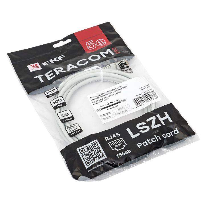Патч-корд кат.5E FTP экранир. LSZH сер. 3.0м TERACOM PRO EKF TRP-5EFTP-LSH-3M-GY фото в каталоге от BTSprom.by