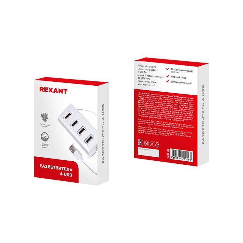 Разветвитель 4 USB-port серебр. Rexant 18-4106 фото в каталоге от BTSprom.by