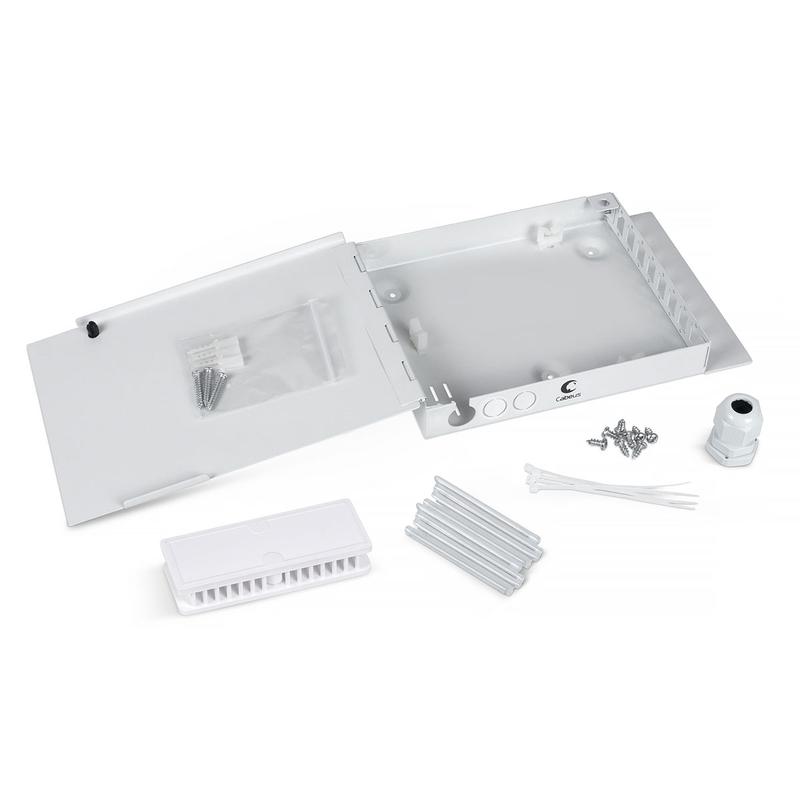 Бокс оптический JJT-8-SC на 8 SC LC duplex настен. со сплайс-кассетой и КДЗС без пигтейлов и проходных адаптеров Cabeus 7306c