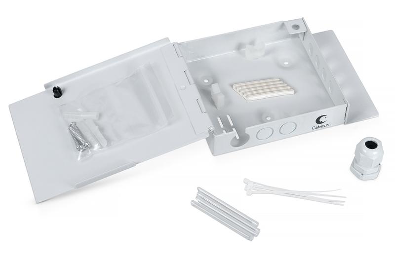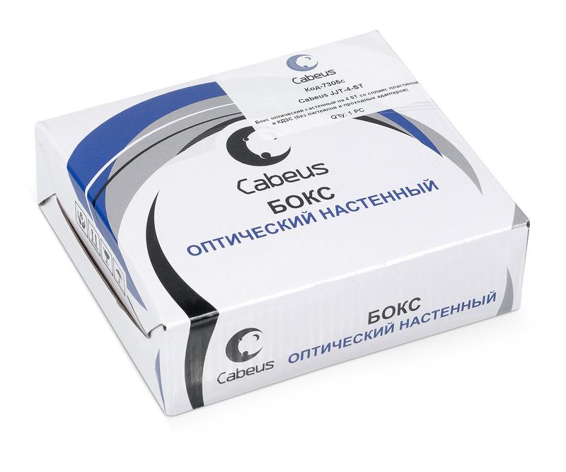 Бокс оптический настенный JJT-4-ST на 4ST со сплайс-кассетой и КДЗС без пигтейлов и проходн. адаптеров Cabeus 7305c