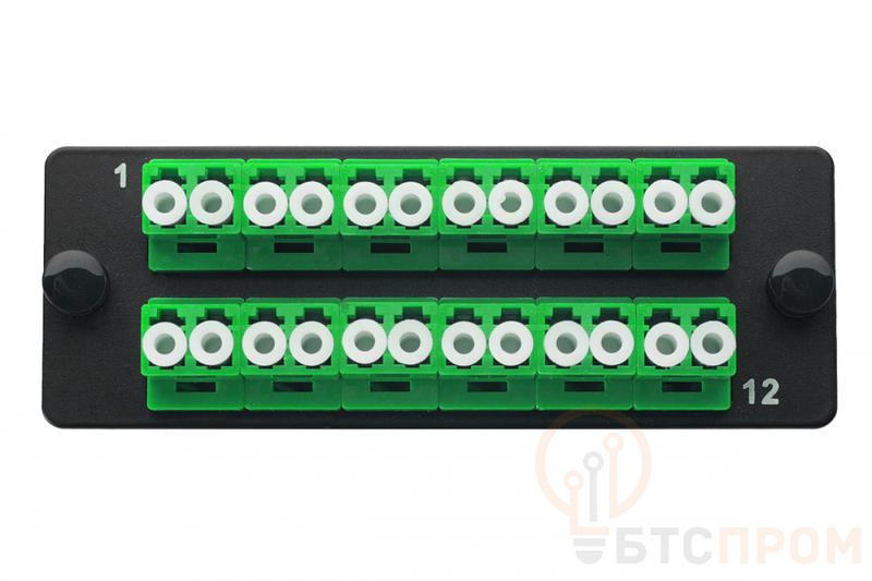 Комплект планка Q-SLOT с 12 адаптерами дуплекс LC OS2 APC монтаж. шнуры КДЗС Eurolan 38M-S2-2L-12BL-A