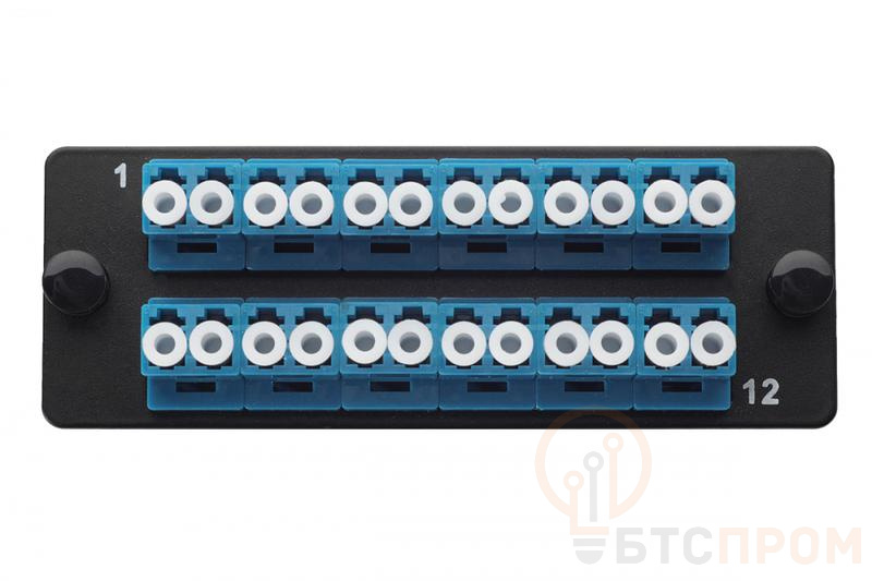 –Комплект планка Q-SLOT с 12 адаптерами дуплекс LC OS2 монтаж. шнуры КДЗС Eurolan 38M-S2-2L-12BL