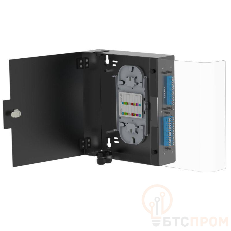 Навесной оптический бокс с двумя слотами под установку адаптерных планок типа RNAP паредназначен для выполнения перехода с оптических кабелей внешней прокладки на кабели внутренней прокладки, для построения настенных оптических кроссов. Максимальная емкость бокса составляет 48 волокон. При необходимости боксы могут быть смонтированы плотно слотами друг к другу для организации коммутационного узла. При установке одного бокса коммутационные шнуры или выносы кабеля внутренней прокладки защищены прозрачным щитком от случайного разрушения.