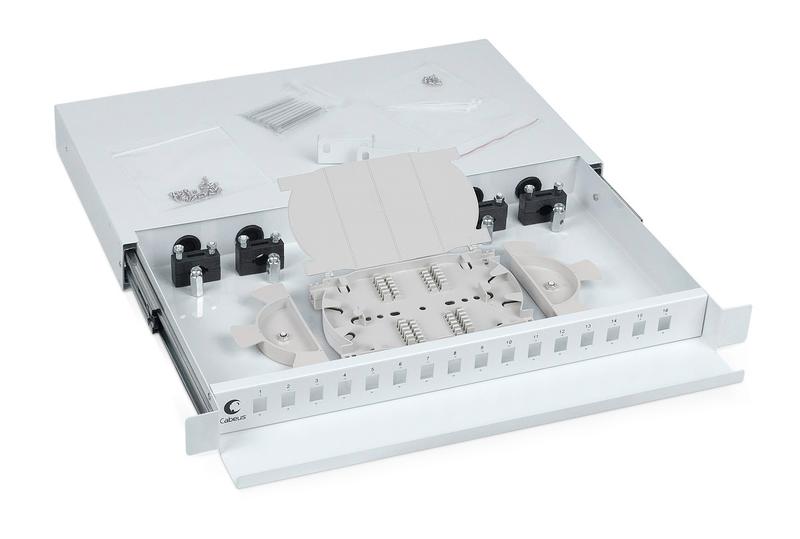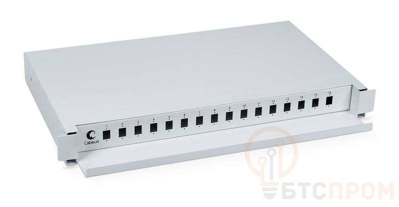 Кросс бокс оптический ODF-19-16-SC 19дюйм на 16 SC LC duplex со сплайс-кассетой выдвижной без пигтейлов и проходных адаптеров Cabeus 7300c