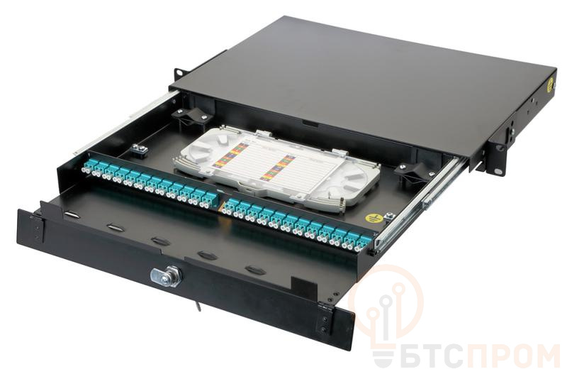 Панель оптическая 47D-24 19дюйм 1U выдвижная корпус на 24 адаптеров 12 дуплекс LC адаптеров ОМЗ Eurolan 47D-24-30-2L-12-11BL