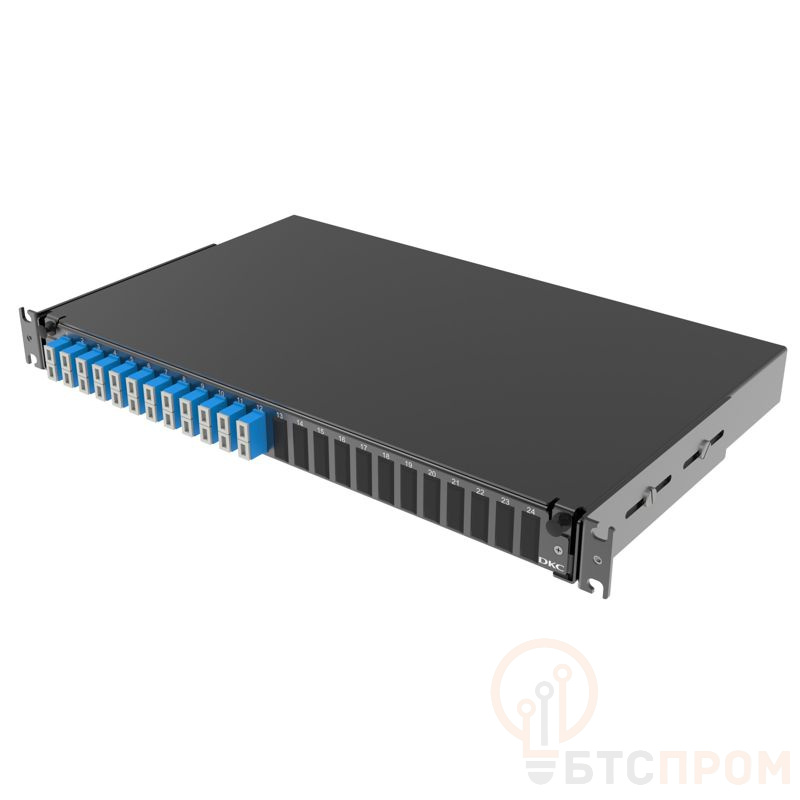 Полка оптическая выдвижная 1U с адатерами 12 х duplex SC OS2 в комплекте с лицевой панелью пигтейлами сплайс-кассет(ой/ами) и гильзами КДЗС DKC RNFP9DSCU12