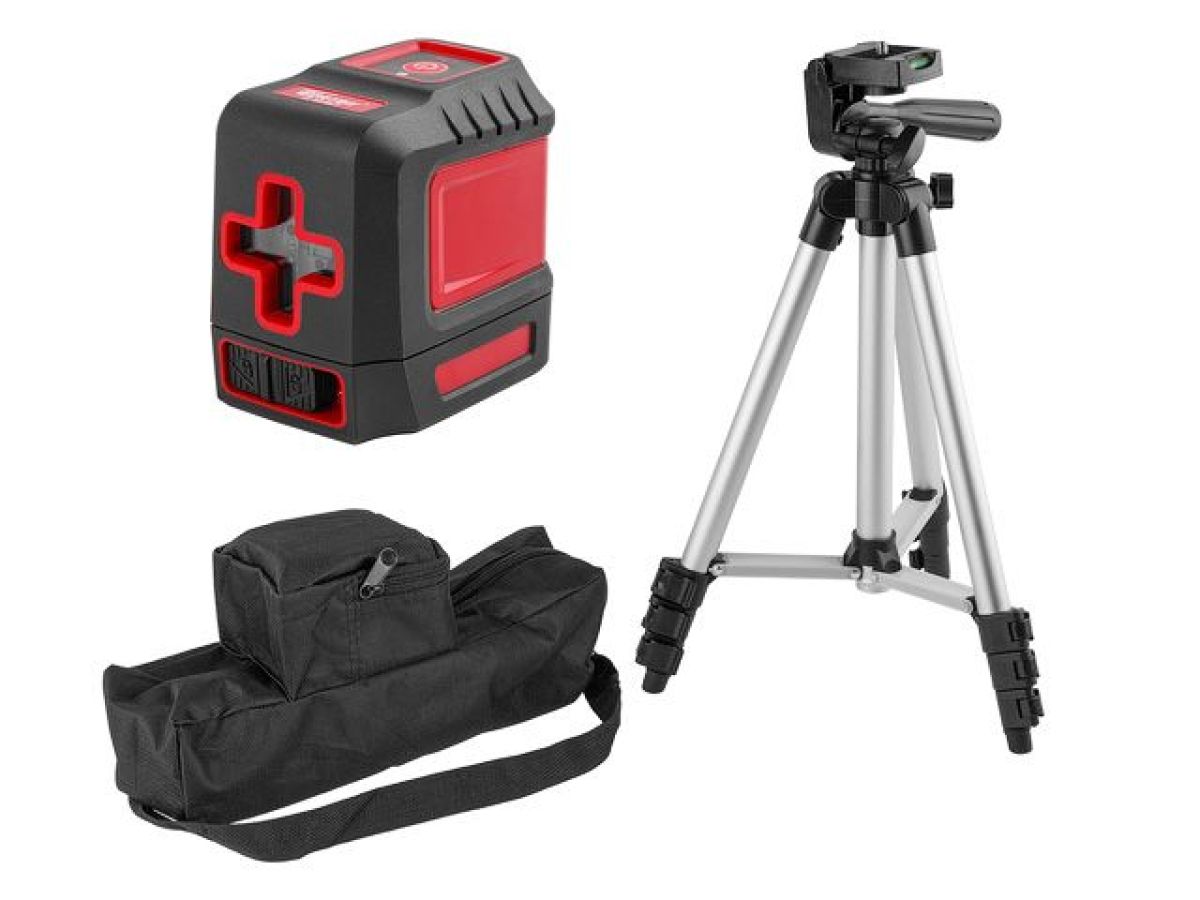 Нивелир лазерный WORTEX LL 0210-1 со штативом в кор. 2х130°, до 15 м, +/- 0.3 мм/м, красный (резьба 1/4", штатив 1 м в комплекте) 0323139