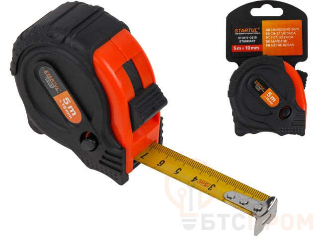 обрезиненный корпус защищает инструмент от механических воздействий и увеличивает срок его службы; Имеет 3 механизма фиксации ленты