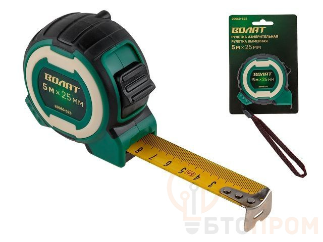 Рулетка 5м/25мм двухкомпон. корп. ВОЛАТ (1 мех. фиксации, ABS+TPR, УФ кольцо на корпусе рулетки) 20060-525