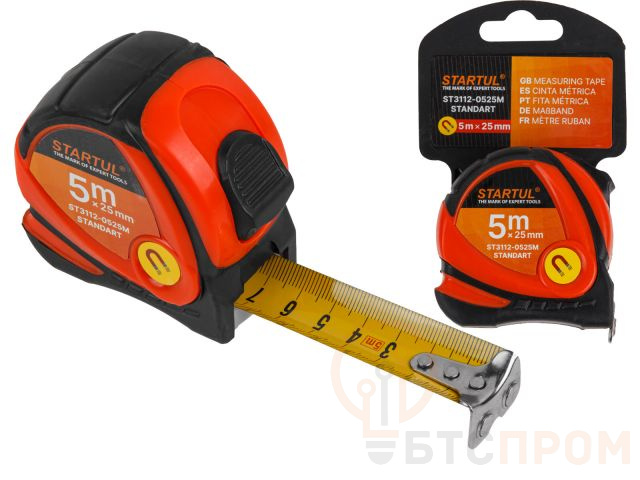 Рулетка 5м/25мм STARTUL STANDART (ST3112-0525M) (1 мех. фиксации, ABS+TPR, магнитный зацеп) ST3112-0525M