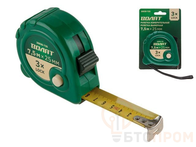 Рулетка 7,5м/25мм пласт. копр. ВОЛАТ (3 мех. фиксации, ABS) 20030-725