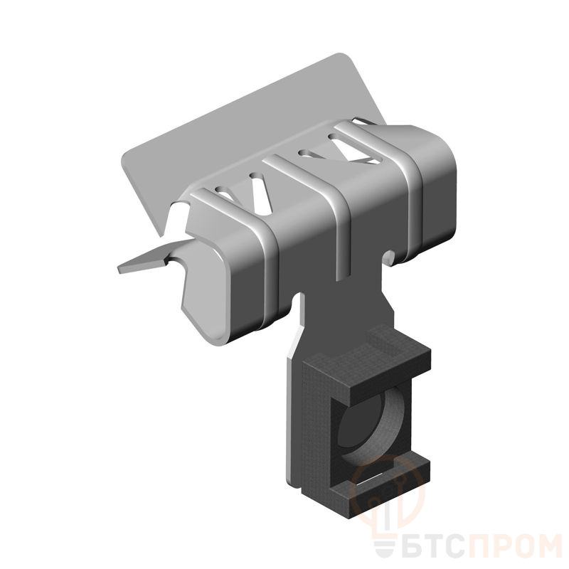 Ключевая особенность зажима – специальный паз для установки стандартной нейлоновой стяжки, которая надежно удерживает жгут проводов. Монтаж осуществляется быстро и без инструментов простым защелкиванием на рейку. Зажим предназначен для крепления пучков кабелей диаметром от 2 до 7 миллиметров.