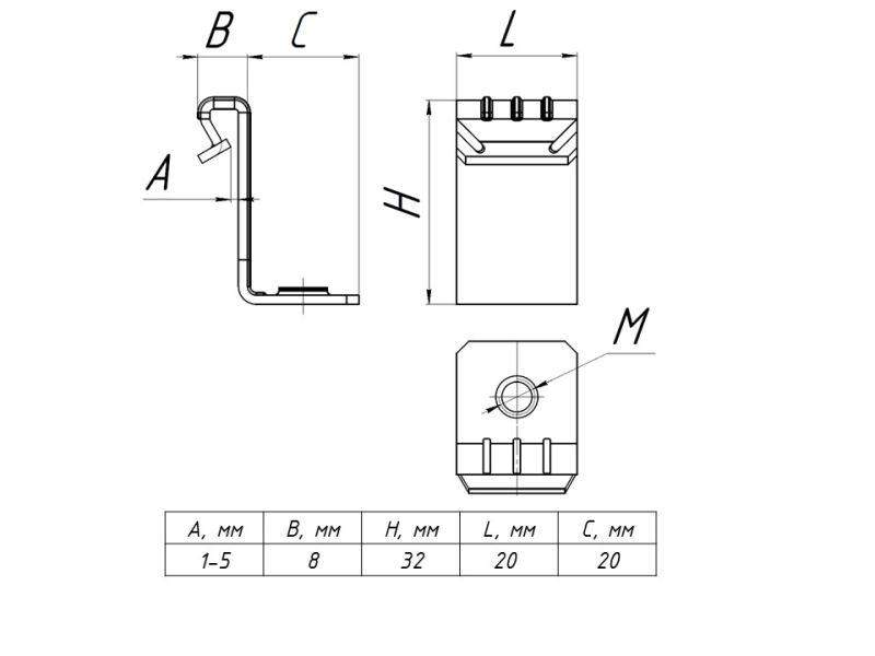 Зажим балочный вертикальный 1-5мм с отгибом и резьбой М6 EKF VBZ1-5-M6G фото в каталоге от BTSprom.by