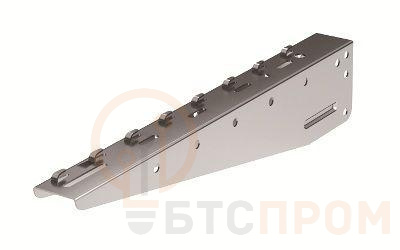 Консоль серии BM для проволочного лотка с шириной основания 200 мм. Предназначена для безвинтового монтажа кабельной трассы на основе системы проволочных лотков "F5 Combitech" с максимально допустимой нагрузкой 250 кг. Крепление осуществляется к профилям PSM и PSL болтами М8х60 и гайками М8. Толщина стали - 1,5 мм.