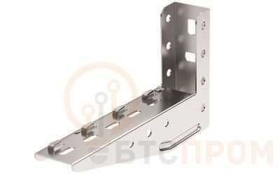 Консоль серии ML для проволочного лотка с шириной основания 200 мм. Предназначена для безвинтового монтажа кабельной трассы на основе системы проволочных лотков "F5 Combitech" с максимально допустимой нагрузкой 120 кг. Возможно крепление к стене или к профилям PSM и PSL болтами М8х60 и гайками М8. Высота консоли - 130 мм. Толщина стали - 1,5 мм.