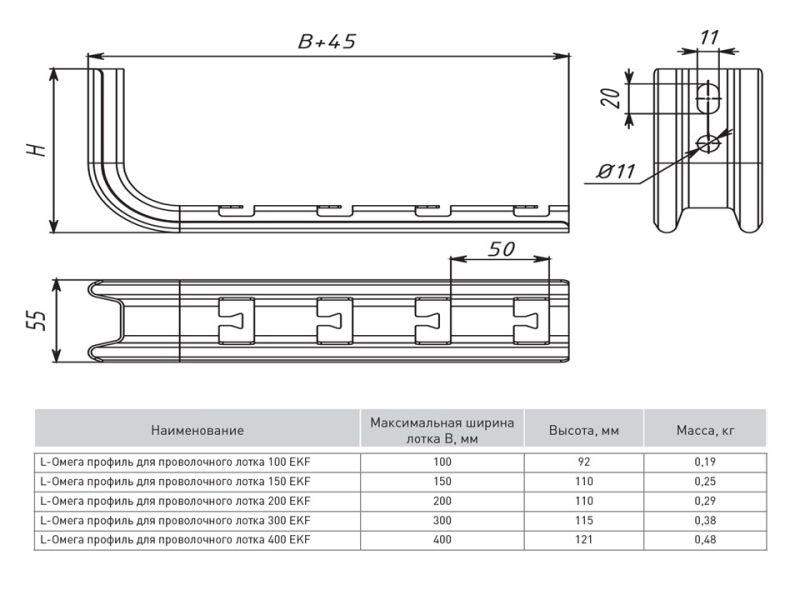 –Профиль Омега для проволочного лотка L-образ. осн.200 нерж. сталь INOX EKF omplp200-INOX