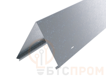 Аксессуары системы "S5 Combitech" предназначены для облегчения монтажа и эксплуатации кабельной трассы. Двускатная крышка предназначена для защиты кабельной трассы от дополнительной нагрузки, которую могут создавать осадки - например, снега. Форма этого аксессуара способствует соскальзыванию снеговой массы. Крышка может с лотками как системы "S5 Combitech", так и других систем. Крышки в исполнении "Цинк-ламель" имеют специальное покрытие на основе химически активной магниевой смолы, в которую добавлены хлопья алюминия и цинка. Такое покрытие обеспечивает электрохимическую и барьерную защиту от коррозии. Показатели коррозионной стойкости цинк-ламельного покрытия ДКС аналогичны показателям горячеоцинкованного покрытия. Угол между скатами составляет 60o – согласно СНиП 2.01.07 – 85, при таком значении снеговая нагрузка на лоток равна нулю. Крышка предназначена для лотков шириной 400 мм и длиной 1,5 м.